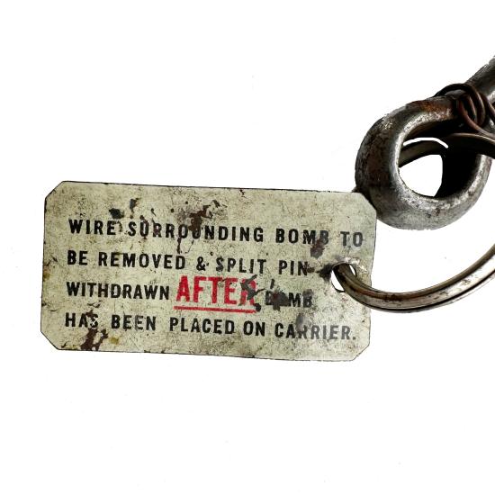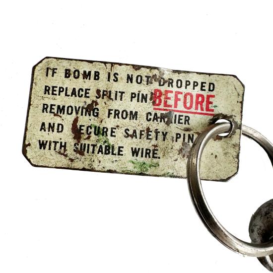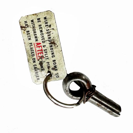 WW2 RAF Bomb Split Pin Key. This example retaining original tin tag with instructions. GC.