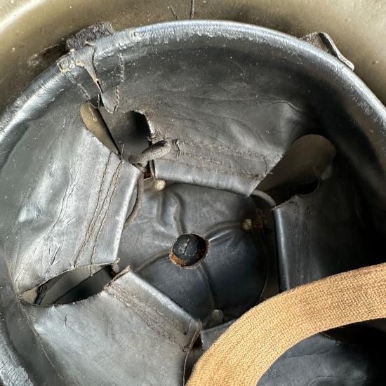 A Mk.II helmet and liner in fantastic condition. The helmet retains all of its factory paint both inside and out marked R.O.C.O 18 I 1939. The MkI liner is complete and in great condition being marked 6 3/4 J.C.S & W LTD I 1939. The front of the helmet has a complete Royal Artillery. This is undoubtedly the best example of a Mk.II with decal that I have come across and I would assume belonged to an officer.