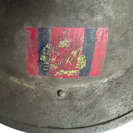 A really nice example of a Mk.II Helmet with matching dates. The shell is stamped 1240 JSS 1939 with MkII 1939 dated lugs and retains the majority of its factory paint inside.The Mk.II liner is stamped 7 TTC II 1939 and in good complete condition. The outside has the Royal Engineers insignia painted and has the remains of the Royal Engineers decal still overlaid. (possibly an officers helmet)