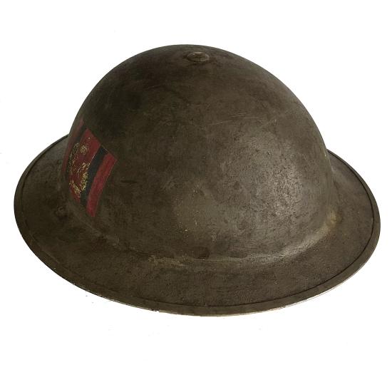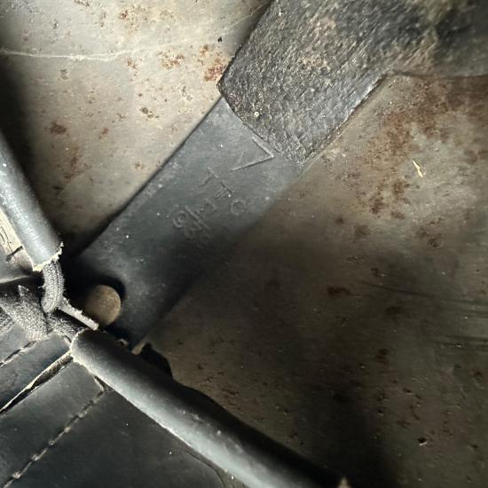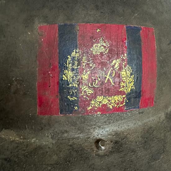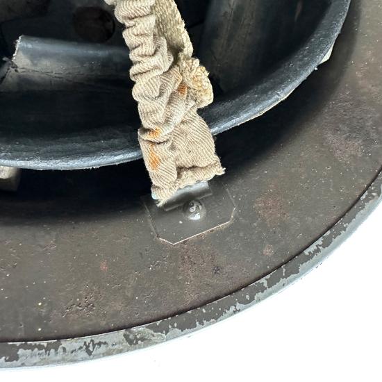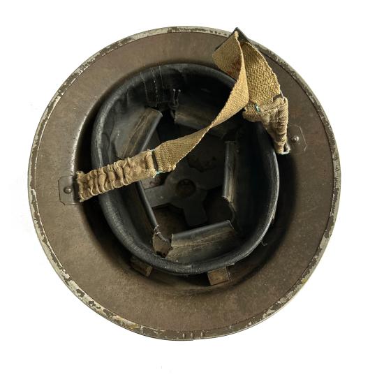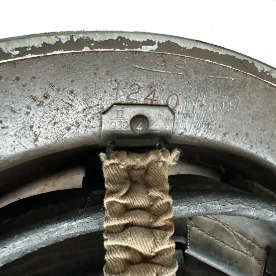 A really nice example of a Mk.II Helmet with matching dates. The shell is stamped 1240 JSS 1939 with MkII 1939 dated lugs and retains the majority of its factory paint inside.The Mk.II liner is stamped 7 TTC II 1939 and in good complete condition. The outside has the Royal Engineers insignia painted and has the remains of the Royal Engineers decal still overlaid. (possibly an officers helmet)