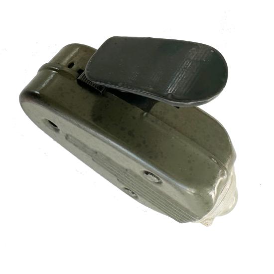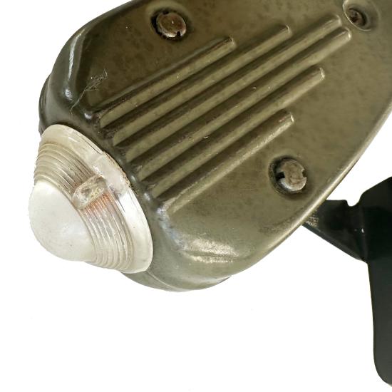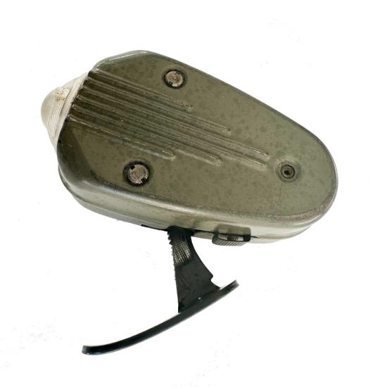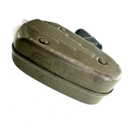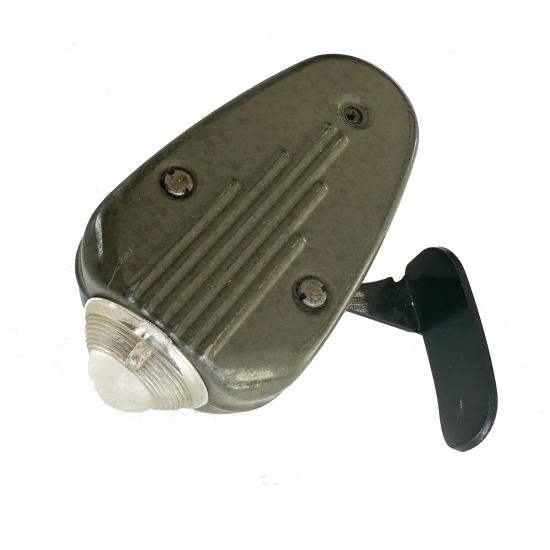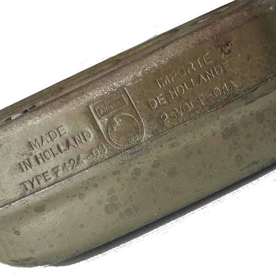 Good overall working condition Philips, Type 7424. 2.5 volt 0.1A. Olive green steel torch/flashlight with integral dynamo generator operated by means of a press lever on the top. The olive drab painted version was only produced in 1943 and was produce for the Wehrmacht.
